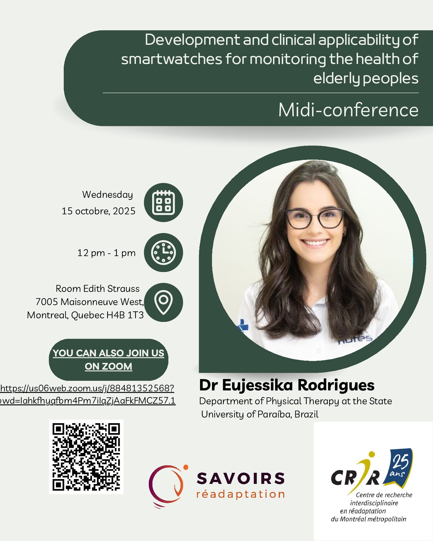 CRIR-LLMRC Scientifique conference – Octobre 15 2025 | Eujessika Rodrigues : Development and clinical applicability of smartwatches for monitoring the health of elderly peoples