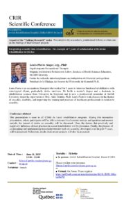 CRIR-HJR Scientific Conference – June 11, 2025 | Louis-Pierre Auger, erg., Ph.D. : Integrating sexuality into rehabilitation – the example of 7 years of collaboration with stroke rehabilitation in Quebec