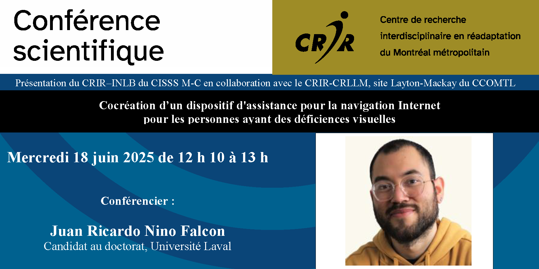CRIR-INLB Scientific Conference – June 18, 2025 | Juan Ricardo Nino Falcon, PhD candidate, Université Laval : “Co-creation of an Internet browsing assistance device for people with visual impairments”