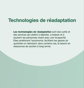 Les personnes de tout âge vivant avec des incapacités sensori-motrices, visuelles, auditives, cognitives ou de la communication sont incluses dans nos recherches.
